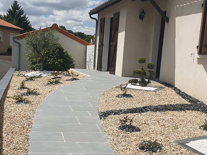 - Revêtements de sols : Enrobés, pavages, dallages et gravillonnages pour vos entrées de garage et allées piétonnes.